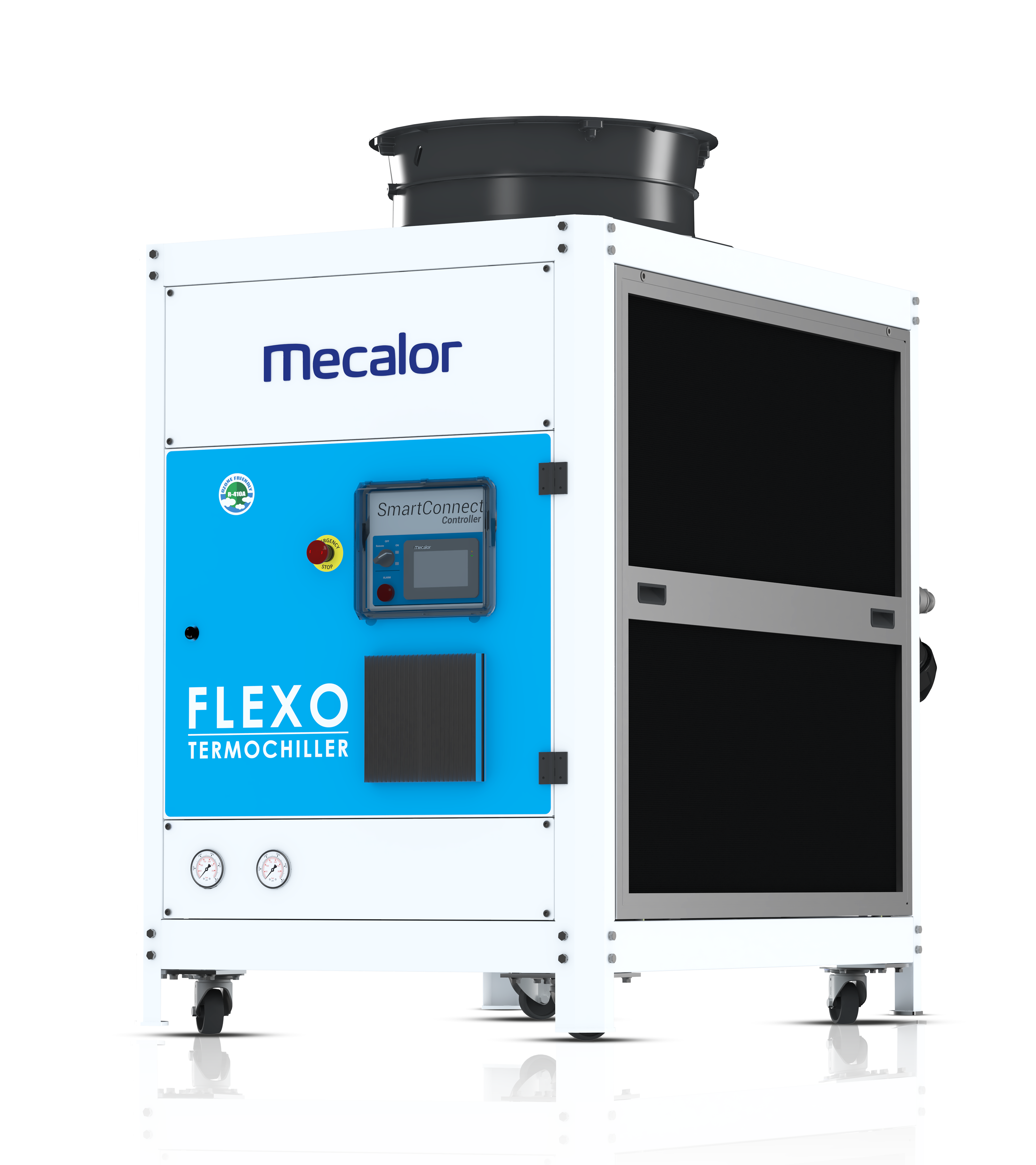 Impresiones flexográficas modernas sobre películas plásticas en hasta 12 colores. Para garantizar la calidad de impresión, la temperatura del tambor central debe mantenerse a 30 °C con precisión. Por otro lado, para garantizar altas velocidades de bobinado de la película, se recomienda mantener las calandrias de refrigeración a unos 15°C. El termo refrigerador Flexo fue desarrollado para satisfacer esta necesidad con dos flujos de agua independientes en un solo dispositivo. Este equipo se fabrica únicamente en la versión refrigerada por aire.